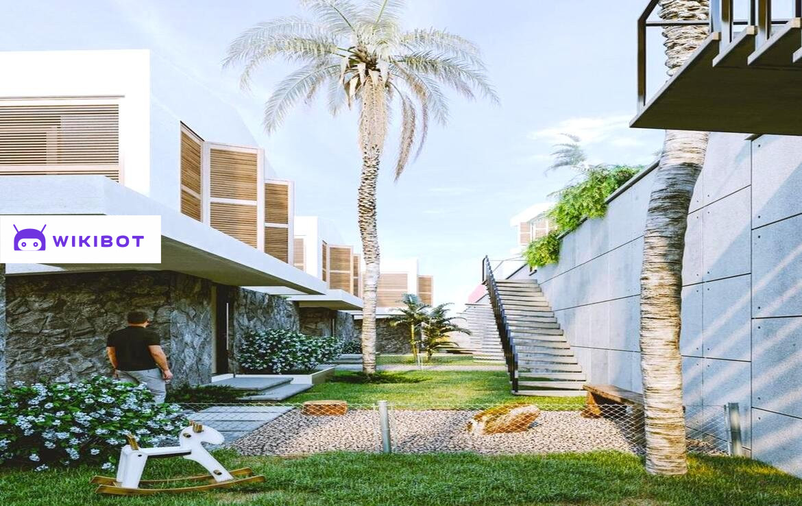 Итак, преимущества самого комплекса. Прямой доступ к местам общего пользования из каждого дома. Общий бассейн и террасы для принятия солнечных ванн, общие туалеты, душевые. Есть кафе/бар у бассейна с видом на горы и море. Местный ландшафтный дизайн, использован в садах домов и в местах общего пользования.