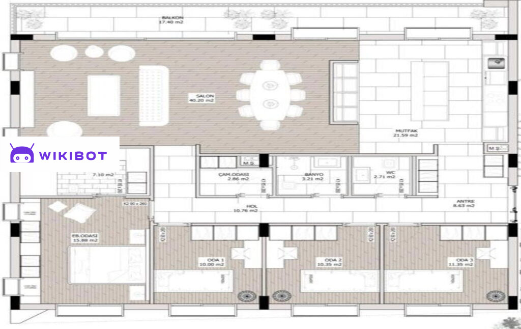 Планировка апартаментов продумана до мелочей. Архитекторы спроектировали просторные спальни, вместительный гардероб и кухню с технологическими решениями для вашего комфорта. Все апартаменты имеют три санузла. Каждая квартира имеет два парковочных места.