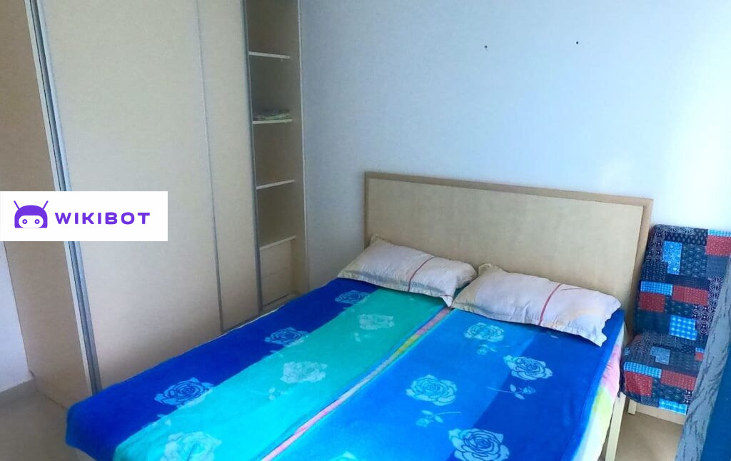 В квартире есть просторная гостиная, где кухня удобно расположилась вдоль одной стены. Один из углов гостиной полностью остеклен, что создает впечатление увеличенного пространства. На специально предназначенном месте можно установить стиральную машинку. К тому же, над ней спрятанные шкафы, предоставляя место для хранения всех необходимых вещей. Санузел обустроен душевой кабиной, раковиной и унитазом. Спальня оснащена шкафом и уютной двуспальной кроватью. Стены выкрашены в приятный бежевый цвет.
