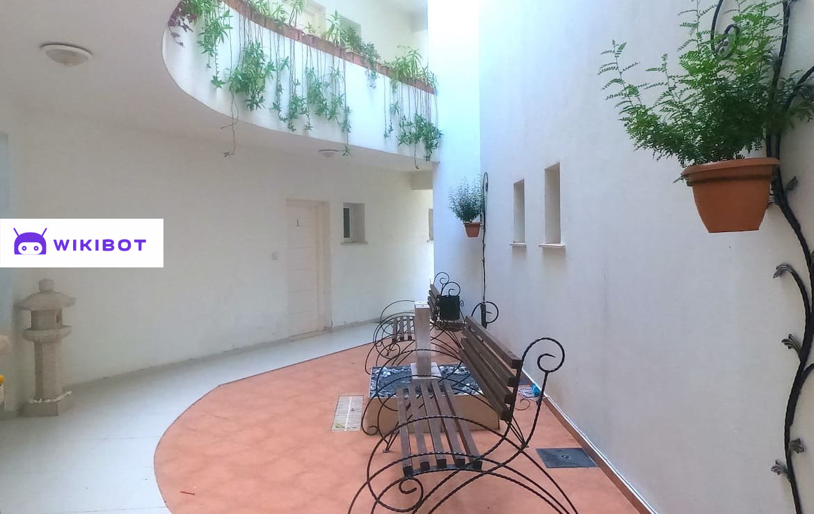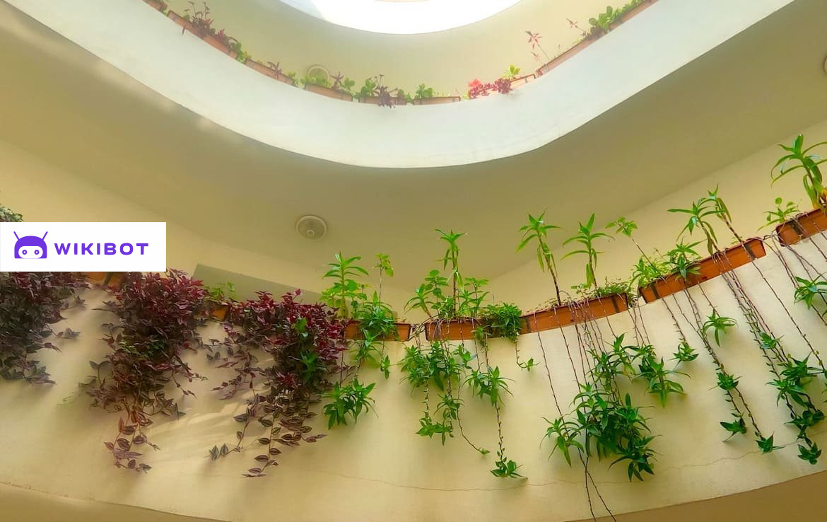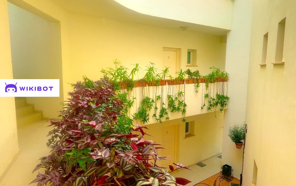 Уникальность этого жилого комплекса заключается в его красивой архитектуре. Этот дом в форме треугольника с открытым пространством внутри. Эта особенность создает постоянное поступление свежего воздуха и приятную атмосферу внутри здания. Вдоль лестниц - растения в цветочных горшках, придают зданию особый шарм и стиль.